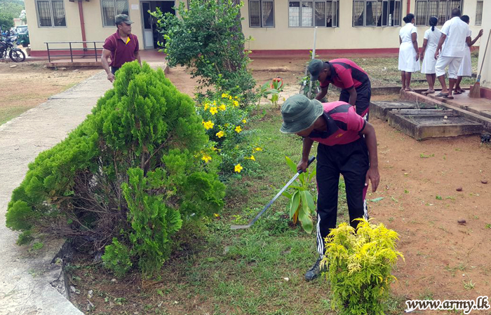 At Mullaittivu, troops of the 59 Division Headquarters on the directions of Major General Jayantha Seneviratne, Commander, Security Forces - Mullaittivu (SF-MLT) joined hands with Dr S Kajen, Director, Mullaittivu District hospital and hospital staff during 1 - 2 February and completely cleaned up the hospital premises and re-painted the main hospital building after attending to minor repairs. SFHQ-MLT also launched a tree planting project inside the HQ premises to coincide with the National Independence Day.
