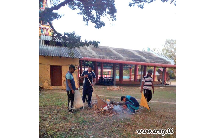 51 Division troops carried out cleaning of the Chunnakam Railway Station, St Mary's church in Kopay, Mathkumman Hindu Temple in Kayts, Sri Nagaviharaya temple in Jaffna, Matthumari Amman Kovil at Tholpuram, Naganlesvaram Kovil at Keeramale. Mavadipuram Kovil, and Raja Rajesweri Kovil at Ileyikadu.