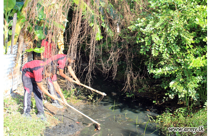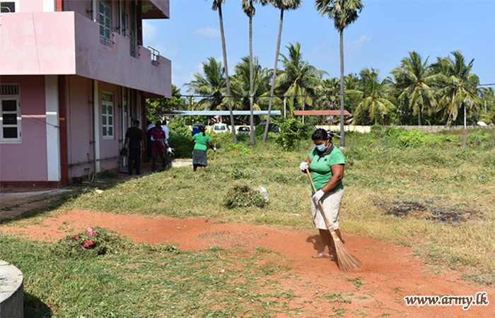 Afterwards, 54 Division troops in another community-oriented project cleaned the Mannar Hospital premises in order to prevent outbreak of Dengue on Monday (3).