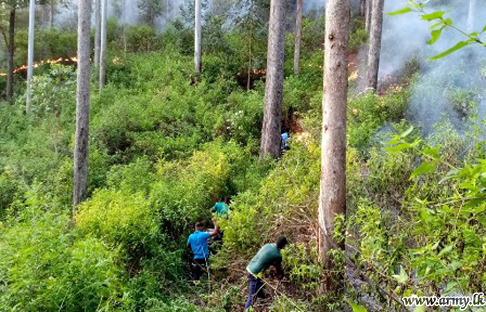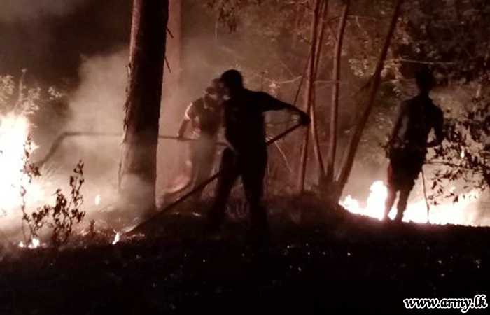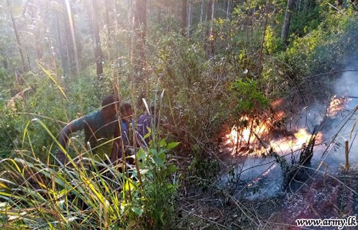 Troops of the 112 Brigade under command to the 11 Division of the Security Force HQ - Central on Sunday (9) quickly responded to the occasion and brought a wildfire that was spreading under control in the general area of Madhuwelpathana, Bidunuwewa in the Bandarawela Divisional Secretariat.