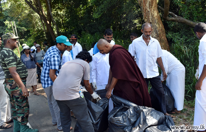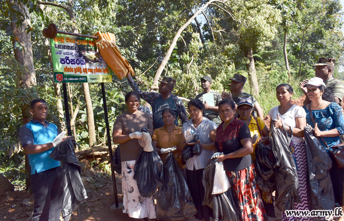 Members of the Air Force, Police, Department of Forest and Wildlife, Government officials in the Pradeshiya Sabawa, Sigiriya and Urban Council-Dambulla, Hotel Associations of the area, Hoteliers, civil society activists and 53 Division troops launched a project to clean up either side of the road from Inamaluwa to Digampathana, covering about 4 km in length Sunday (9) and put up 20 awareness notice boards for protection of the environment along the road patch.
