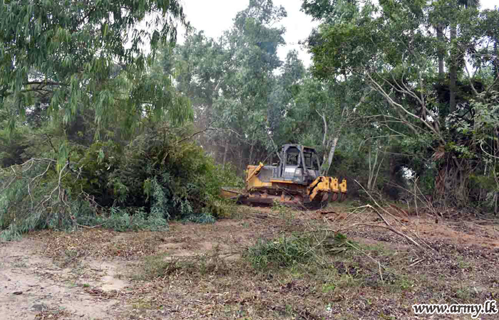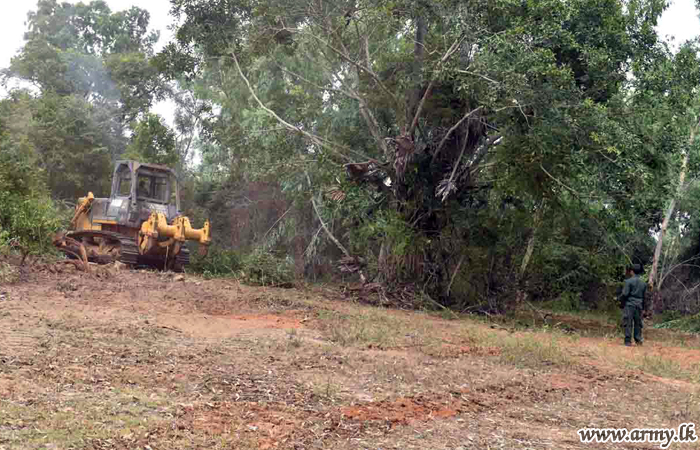 Accordingly, the project got to a start using 1 digger (excavator crane truck), one backhoe loader and a bull dozer in order to clear 20 acres in extent now covered with wild bushes and creepers. A group of Army personnel on the directions of Major General Rasika Fernando, Commander, Security Forces - East began the project on Monday (3). |