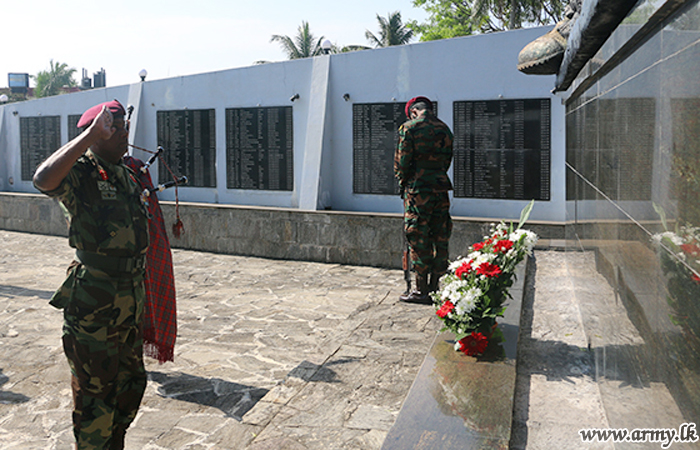 Paying his deep respect to the memory of fallen Commando War Heroes, Major General was then ushered to lay a floral wreath at the Commando War Memorial at Ganemulla.
