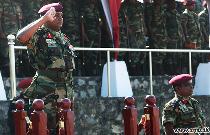 Commando Regiment (CR) organized a felicitation ceremony and saluted the newly-promoted Major General Priyantha Senaratne, General Officer Commanding (GOC) 53 Division on Thursday (13) in a fitting ceremony, held at the Regimental Headquarters at Ganemulla, giving pride of place to military formalities.