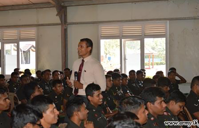 Educative lecture sessions on ‘Blissful Army Life’ under the supervision of Major General H.L.V.M Liyanage, Director General, Directorate of Psychological Operations got underway for Officers and Other Ranks at the 2 Battalion Sri Lanka Light Infantry - Kelanimulla on Tuesday (11) and also at the Sri Lanka Army General Services Corps auditorium of the Security Force Headquarters - West (SFHQ-West) on the following day (12).