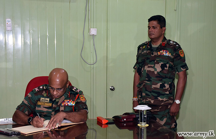 The Commander, Security Forces - Kilinochchi, Major General Jayantha Gunaratne made an official visit to the 652 Brigade and its under command Battalion 7 Sri Lanka National Guard on Tuesday (11) and later visited 574 Brigades and its under command 3 Battalion Gajaba Regiment and 9 Sri Lanka Vijayabahu Infantry Regiment. In addition, he went to the 57 Division Battalion Training school at Ampakamam on the same day.