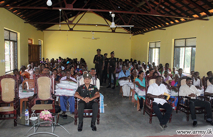 Commander, 231 Brigade, Colonel Janaka Pallekumbura, Commanding Officer, 4 Gemunu Watch , Commanding Officer, 11 Sri Lanka Sinha Regiment, Other Ranks and villagers were present during the distribution. |