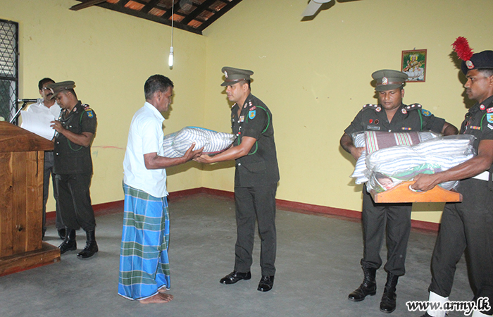 On an initiative taken by the 23 Division commanded by Major General Dhammika Jayasundara, General Officer Commanding (GOC), 231 Brigade troops coordinated the supply of bed sheets and pillows to 250 underprivileged families, badly affected in the recent floods in the general area of Unnachchiya.
