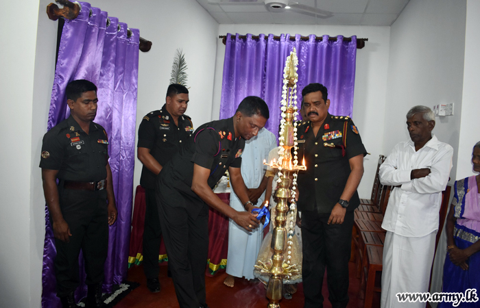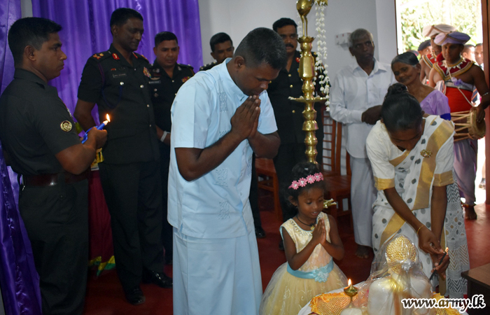 The newly-constructed house was declared open by Mr Suraj Sanjeewa Silva, Head of the Sewana Holdings and Major General A. S Ariyasighe, General Officer Commanding, 14 Division on Sunday (16) at the invitation of Major E. M. M. S. K Ekanayake, Commanding Officer, 14 VIR.