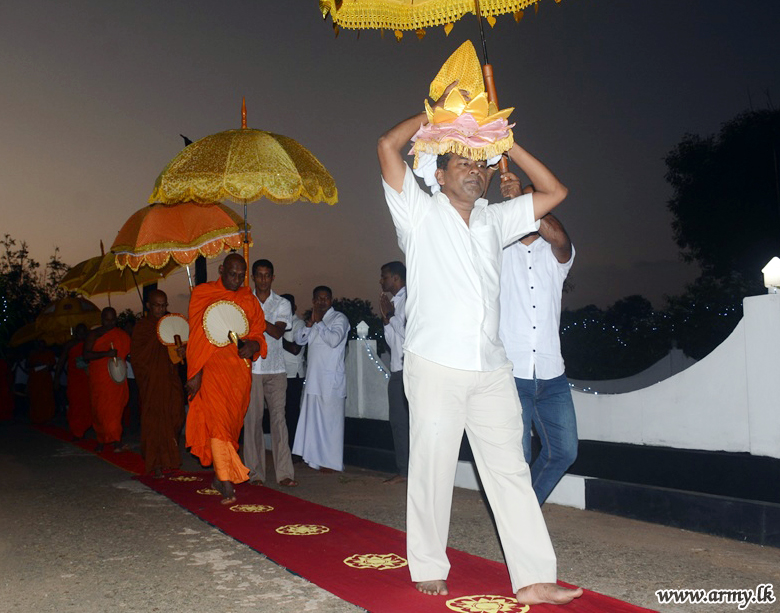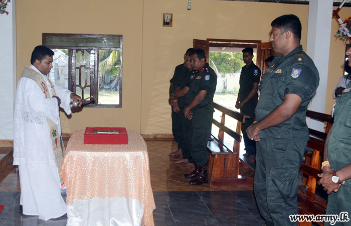 Bodhi Pooja, alms-giving to monks, Hindu Pooja at Wattapalai Kannakiamman Hindu Kovil and Catholic service at St Sebastian Church at Kokilai preceded the anniversary day (15) military segment at the 593 Brigade HQ.