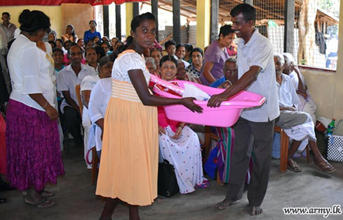 The programme, conducted under the supervision of Major General D.S.D Welikala was organized by the 542 Brigade HQ with the support of Civil Affairs Officer in the 54 Division. 42 families and 14 students living in those villages were benefited under the project which also gave away a special ration pack to one pregnant woman in the area.