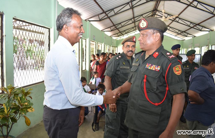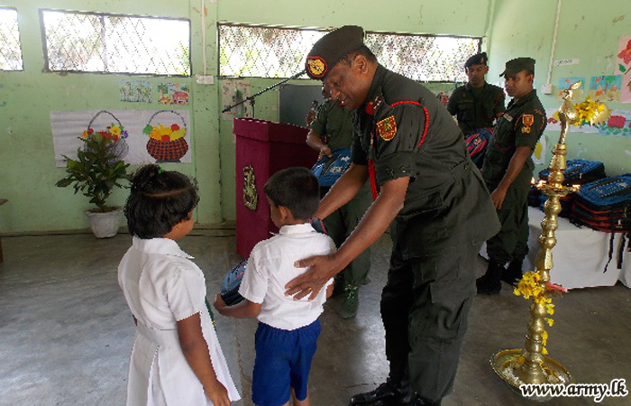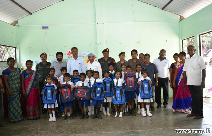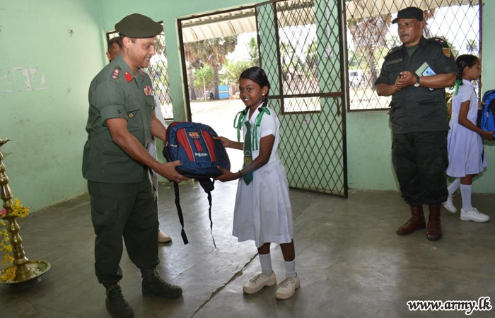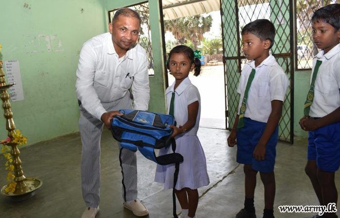 Consequent to a sponsorship provided by a Southern donor, troops of the 24 Vijayabahu Infantry Regiment (VIR) assisted and coordinated the donation of a consignment of school accessories to 18 students at Maduwinadu Government Tamil Mixed School in Pooneryn on Monday (24).