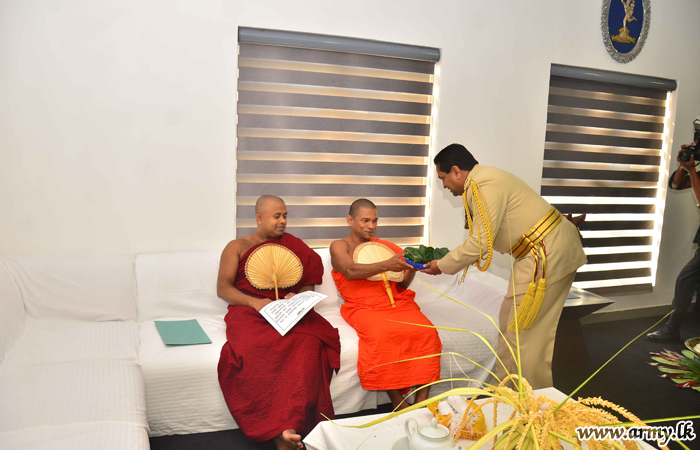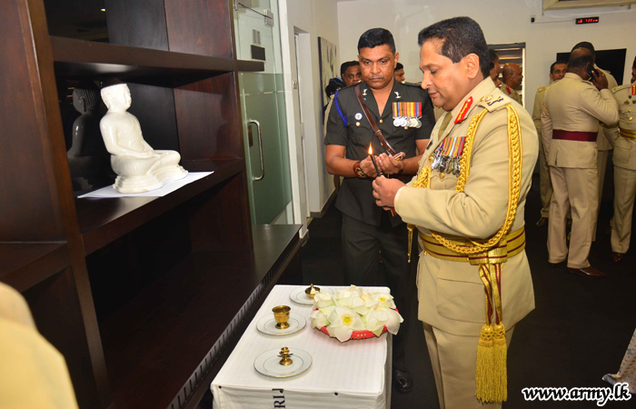 Afterwards, Major General Prabhath Dematanpitiya paid tribute to War Heroes’ monument in the RHQ premises. Lighting of the traditional oil lamp, religious observances and other formalities after a while made him to officially accept the office by signing a formal document. Members of the Maha Sangha invoked blessings and blessed his new office.