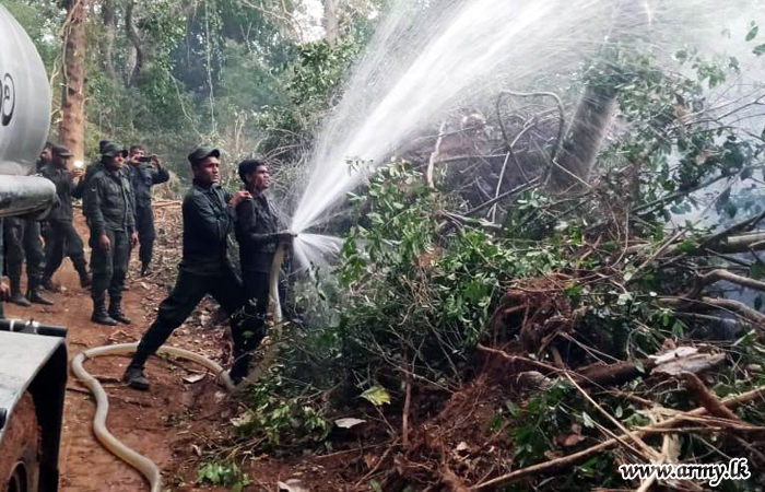By responding to the SOS call, troops including one officer and 26 troops of 1 SLNG rushed to the venue. With the help of two bulldozers, its further spread was prevented by the troops.