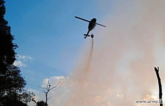 Meanwhile, fire fighters and Sri Lanka Air Force troops with the support of one helicopter got into the action and fought against its spread.