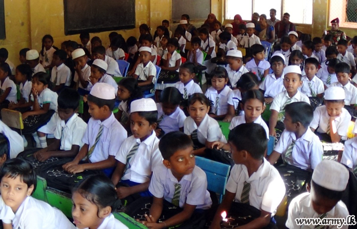 19 Sri Lanka Light Infantry (SLLI) troops of the 651 Brigade under the 65 Division of the Security Force Headquarters - Kilinochchi (SFHQ-KLN) coordinated a donation of school bags among needy children in the Government’s Muslim Mixed School at Nachchikuda on Friday (28).