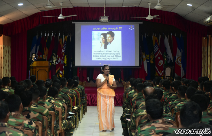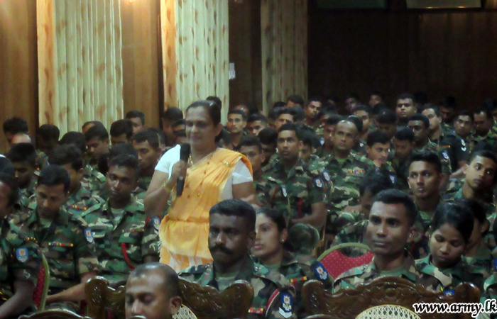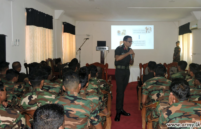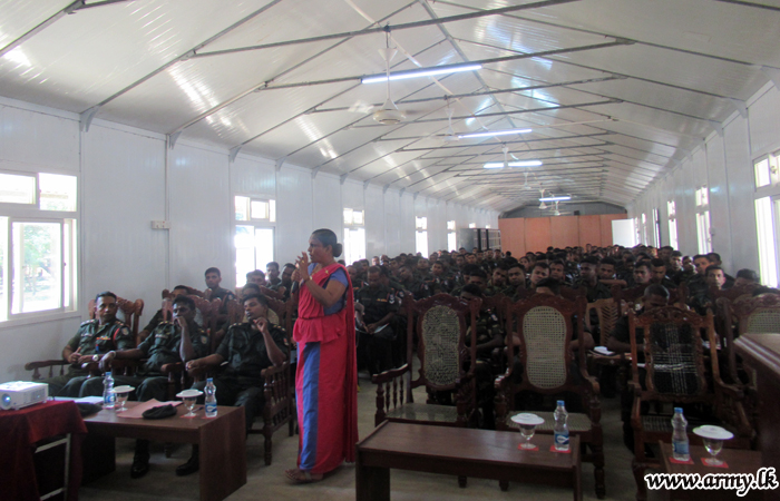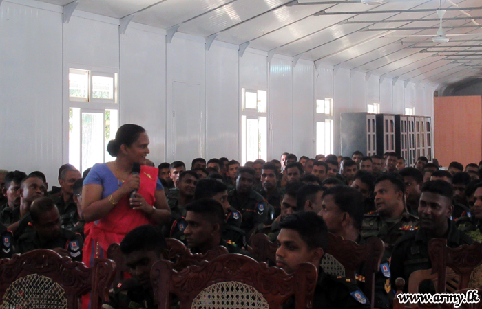 Similarly, another lecture on ‘Development of Attitudes for a Sound Family Life’ was delivered by Lieutenant Colonel B.G.S Samanthi of the Directorate of Psychological Operations during the same period covering the Security Force Headquarters - Mullaittivu, 59 Division HQ, 64 Division HQ and the 68 Division HQ.