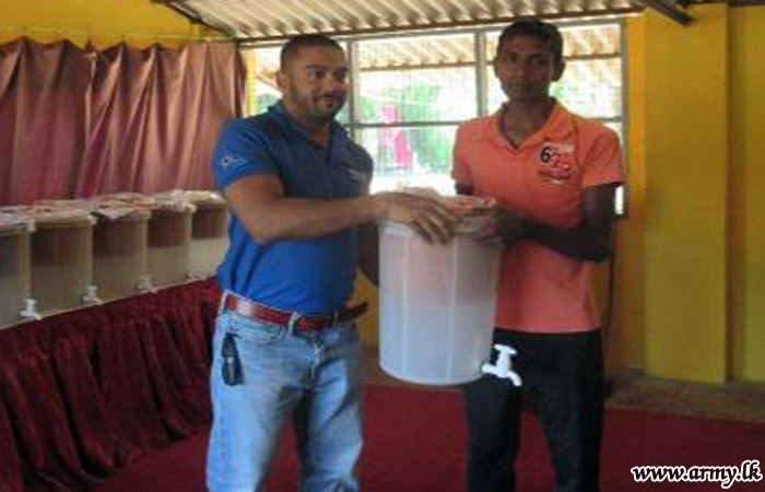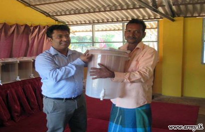 621 Brigade troops of the 62 Division under the Security Force Headquarters - Wanni (SFHQ-W) extended their maximum support and coordinated a distribution programme of water filters and T-shirts among poorest of the poor in Nikawewa (South) area during a brief ceremony at the Ethawetunuwewa community hall in Welioya on Sunday (1).