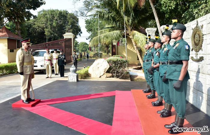 A Guard Turnout and a Guard of Honour presented by 14 Sri Lanka Sinha Regiment troops honoured him during the arrangement before he addressed SFHQ-MLT troops on the occasion.