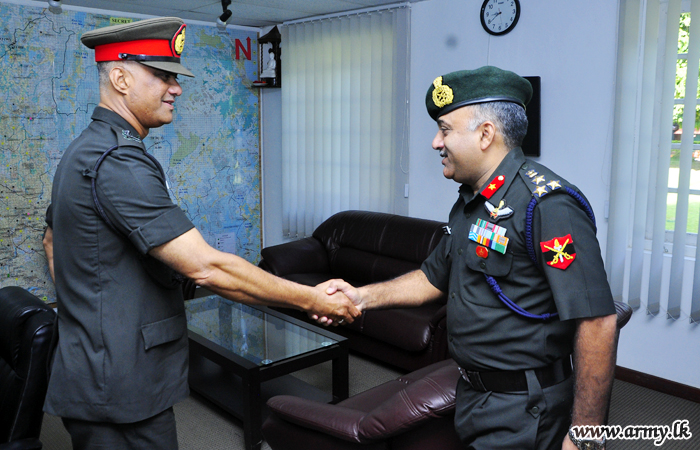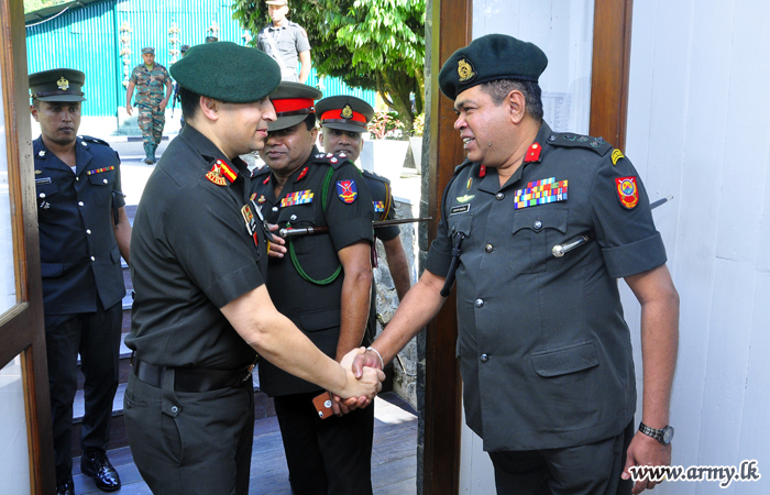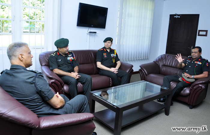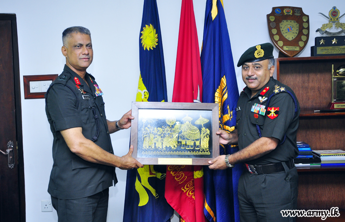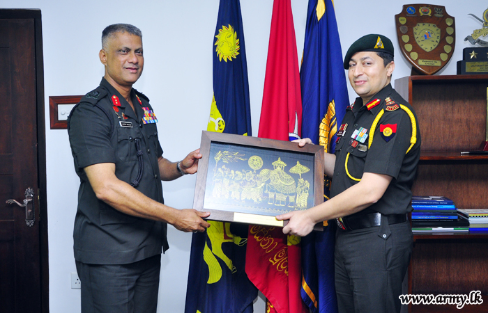 Major General Laksiri Waduge, Commander, Security Forces - Central on behalf of Major General Suraj Bangsajayah, Commandant Army Training and Command (ARTRAC), Director General General Staff extended a warm reception to a two-member delegation of Senior Indian Army Officers when they arrived at the Security Force Headquarters - Central on Thursday (5) to join consultations at the ARTRAC.