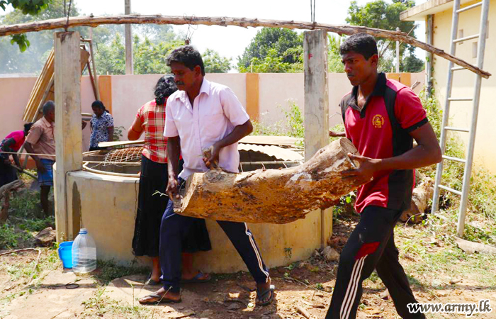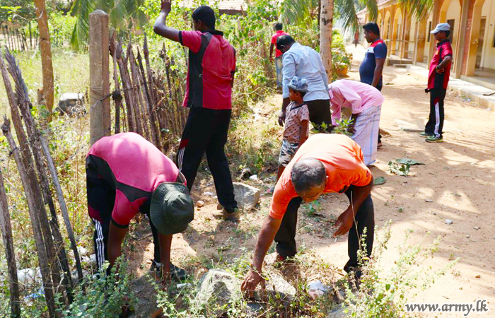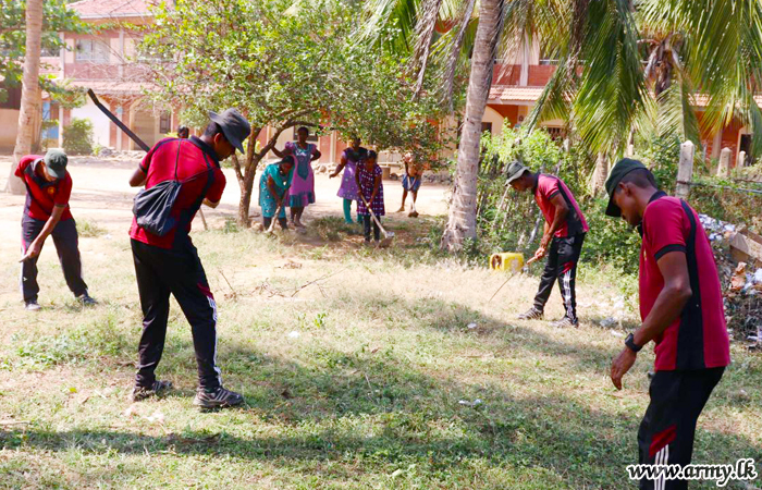 Troops of the 574 Brigade and the 9 Vijayabahu Infantry Regiment at the request of the school carried out a Shramadana drive at Bharathipuram School - Kilinochchi on Wednesday (4).