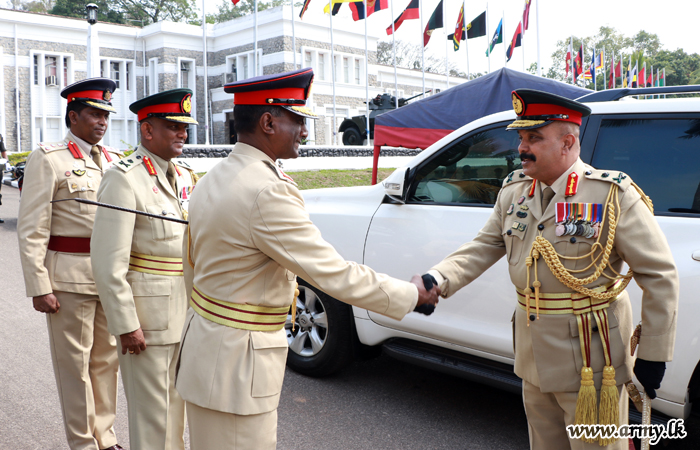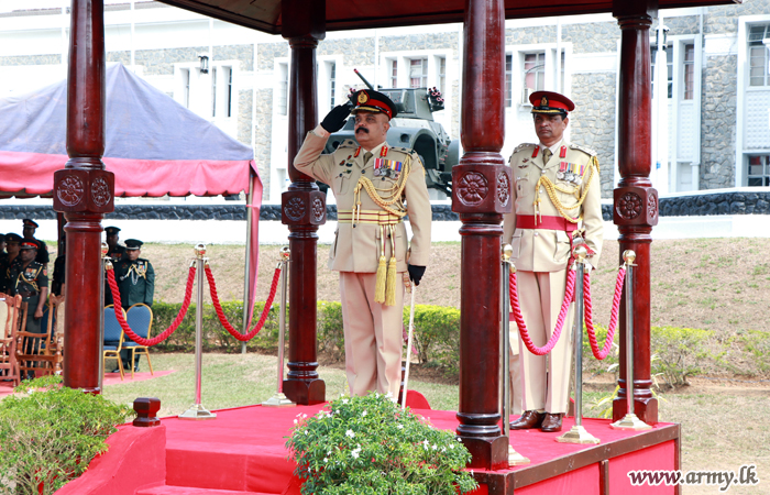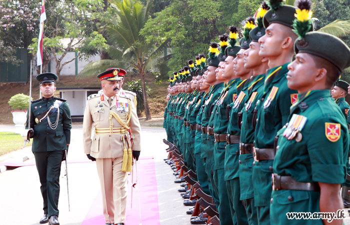 Meanwhile, the retiring Major General Mahinda Mudalige, hours before his relinquishment of appointment as Commander, Security Forces - West was honoured in a Guard Turnout and a Guard of Honour, presented by Sri Lanka Light Infantry troops. On the same occasion, Major General Mudalige was invited to open the new cottage for security checks at the entrance to the Panagoda Army Cantonment.