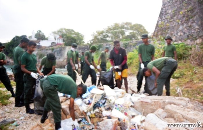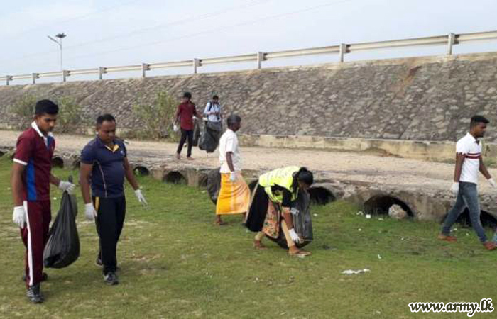 More than 1000 troops of the 22 Division, 23 Division and 24 Division under command to the Security Force Headquarters - East (SFHQ-E) on Friday (6), together with hundreds of school children, volunteers and state employees in respective areas simultaneously launched a mega beach clean-up drive in Trincomalee’s Fort Fredric area, Orrs’ Hill, Koneshwaram and Maniyaweli beaches in Trincomalee, Kayankerni, Kaththankudy and Kalkudah in Batticaloa and in the general areas of Kalmunai, Pottuvil, Arugam Bay in the Ampara district.
