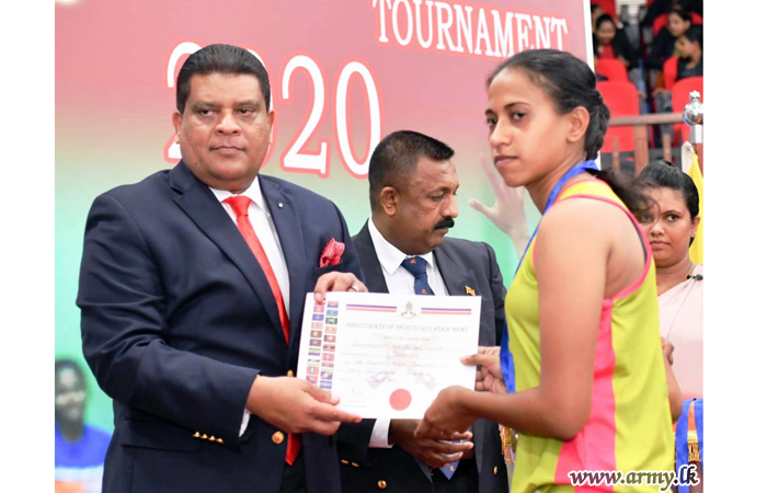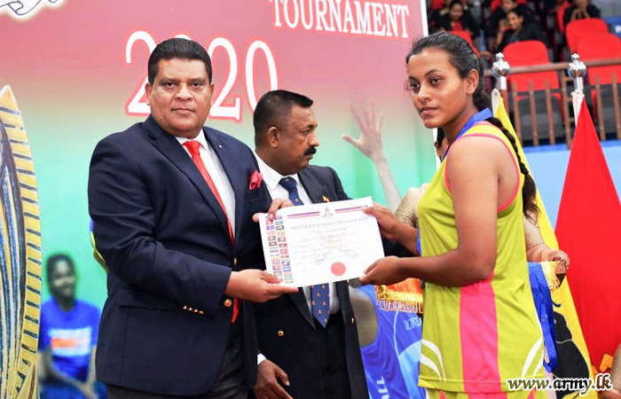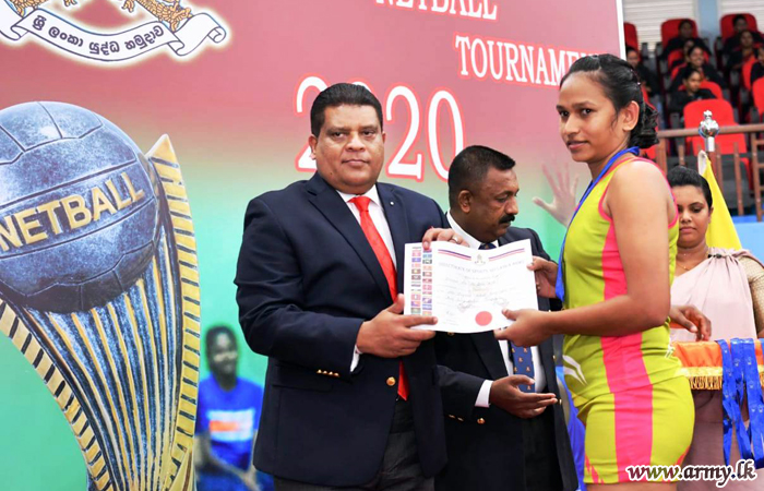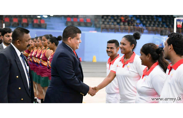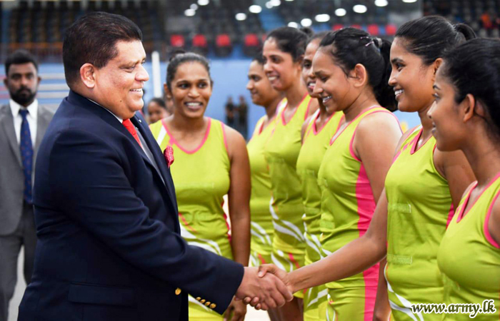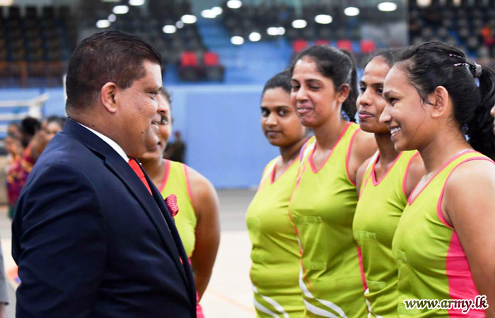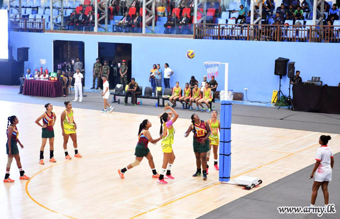 Chief of Defence Staff and Commander of the Army, Lieutenant General Shavendra Silva as the Chief Guest in the finals and the awarding ceremony of the Inter Regiment Netball Championship at Panagoda Army Indoor Stadium gave away trophies and certificates to the achievers on Friday (6).