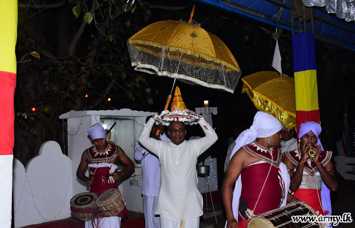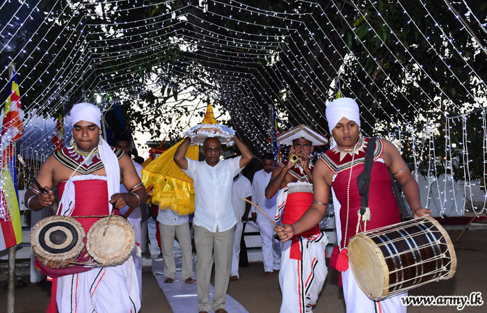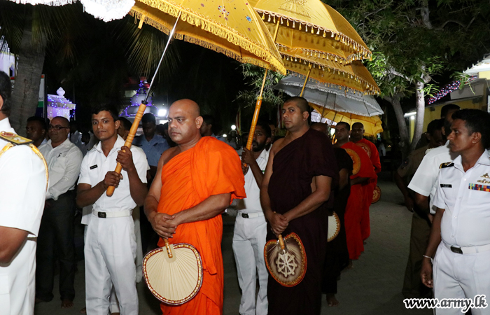 Similarly, Security Force Headquarters - Kilinochchi (SFHQ-KLN) with the same motive as at Jaffna Nagadeepa Vihara assisted the conduct of a blessing ceremony, held at Lumbini Viharaya in the heart of Kilinochchi town on Saturday (7).
