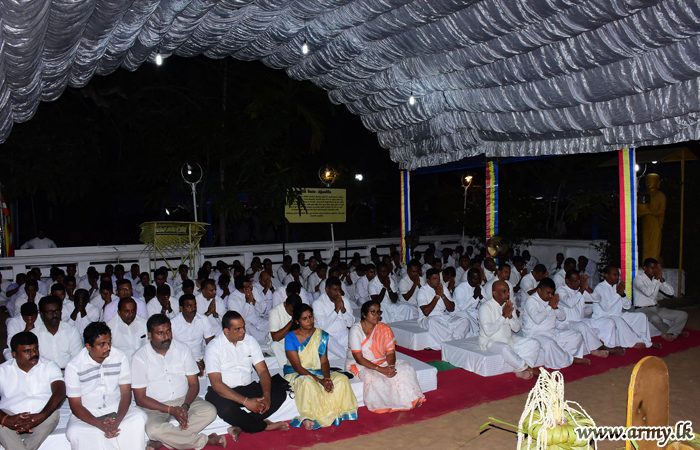Major General Jayantha Gunaratne, Commander, Security Forces - Kilinochchi attended the inaugural occasion of the ‘Pirith’ chanting at Lumbini Vihara, together with state officials and members of the Security Forces and the Police. This has been organized by the Kilinochchi District Secretariat in coordination with all state agencies.