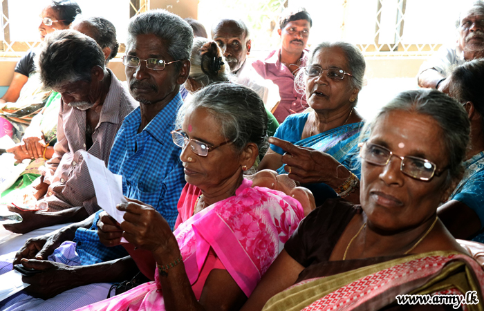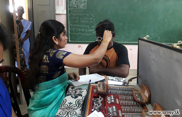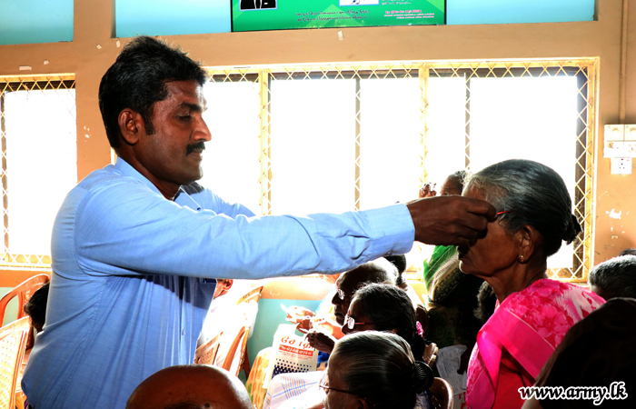 Security Force Headquarters - Jaffna (SFHQ-J), together with 513 Brigade troops launched a welfare project on Monday (9) by way of an eye clinic and free distribution of spectacles to needy people in the general area of Waddukkodai following an arrangement, held at Arali Saraswathi School in Jaffna.