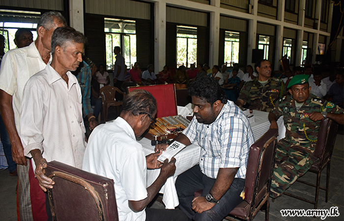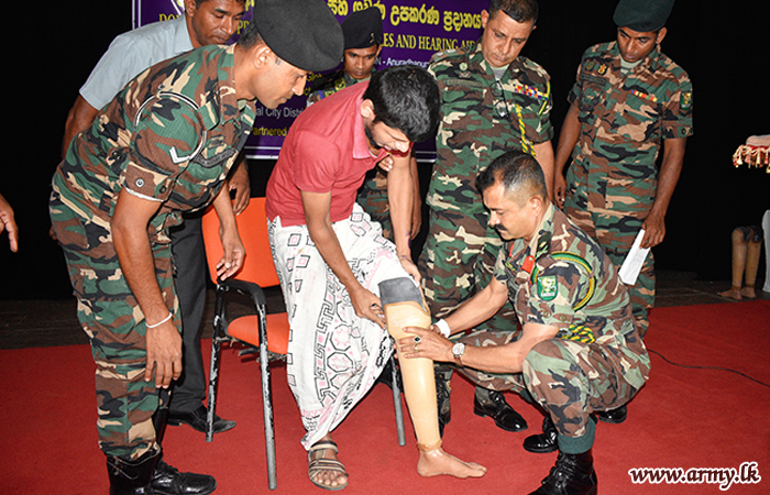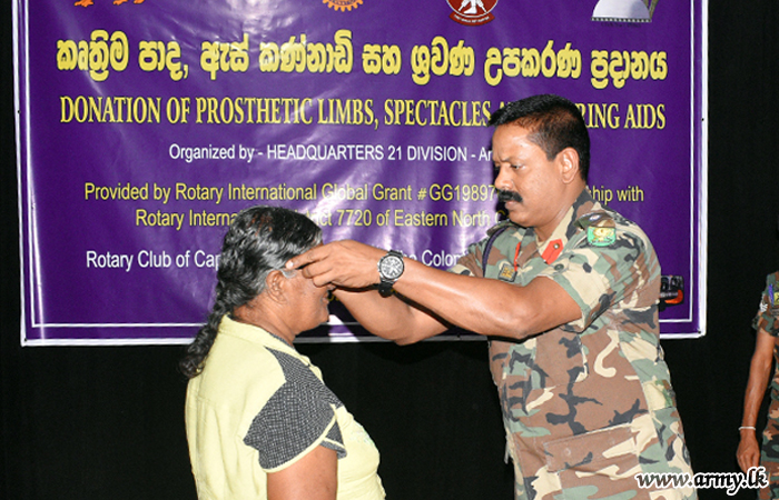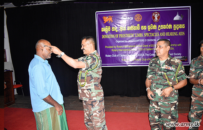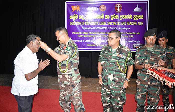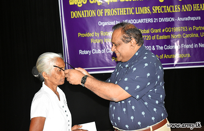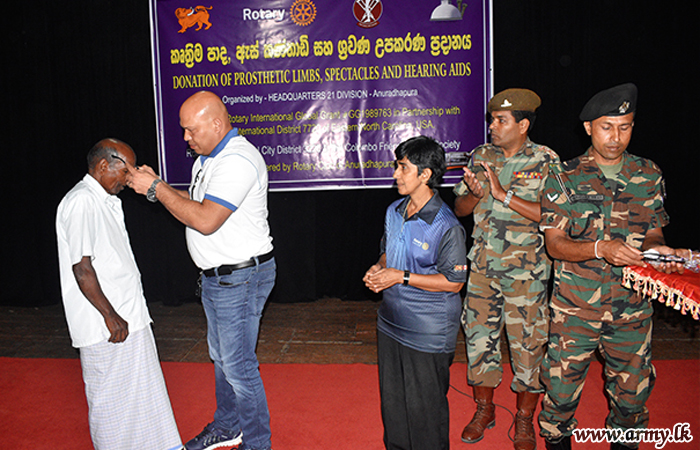 Continuing with the social welfare projects, initiated by the Security Force Headquarters - Wanni (SFHQ-W), 21 Division Headquarters under command to the SFHQ-W in Anuradhapura provided medical screening for over 500 needy people and free spectacles and artificial limbs during a medical camp organized at the Anuradhapura Youth Centre conference hall on Sunday (8).