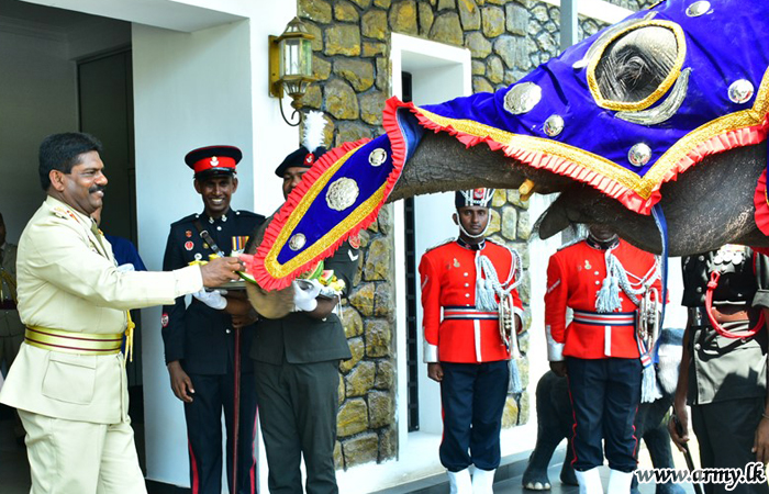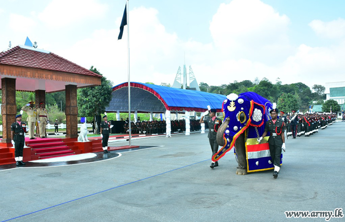 The day's event commenced with a ceremonial Guard Turnout, followed by a Guard of Honour salute, together with the regimental mascot and regimental Colours at the parade ground. Major General Jayantha Gunaratne, new Colonel of the Regiment, SLLI, welcomed him afterwards, together with veterans, Senior Officers, Officers and Other Ranks from all Units who joined the occasion. The outgoing Major General Mudalige joined a flora wreath-laying ceremony too at the SLLI War Heroes' monument.