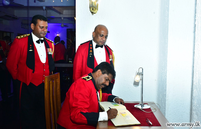 The programme of events culminated with the customary a ‘Guest Night’ hosted for Major General Mahinda Mudalige & Mrs Mudalige by Senior Officers, Officers and their Spouses in the Regimental Officers’ Mess.