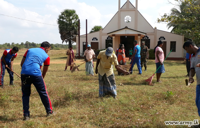 7 Battalion Sri Lanka National Guard troops of the 652 Brigade serving under the 65 Division along with villagers recently carried out a Shramadana campaign to clean the American Ceylon Mission church premises at Akkaryankulam at the request of church authorities.