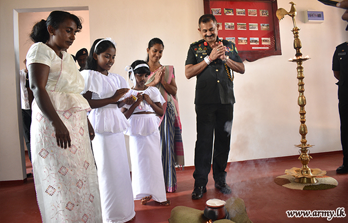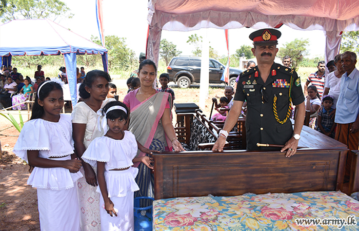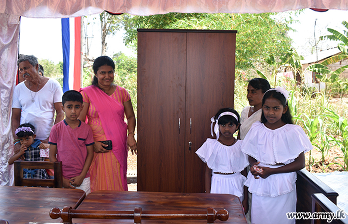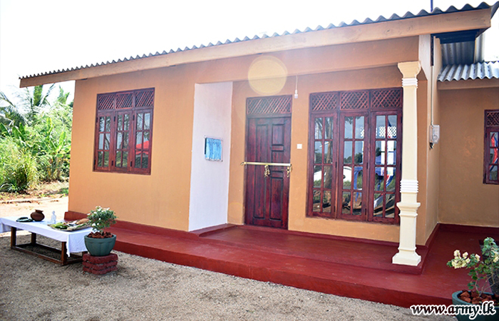 One more new house for a needy family, built by troops of the 5 Sri Lanka National Guard of the 212 Brigade under the 21 Division of the Security Force HQ-Wanni in the general area of Katukeliyawa, Thanthirimale was vested in a helpless widow with children on Saturday (14 March) during a brief ceremony.