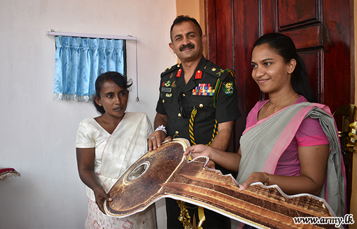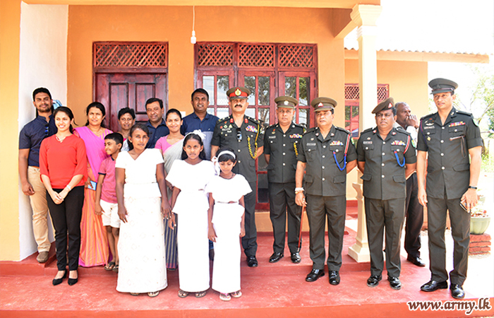 Dr Madushika Costa of Anuradhapura Hospital through the General Officer Commanding (GOC), 21 Division, Major General Vikum Liyanage consented to sponsor the entire construction, appreciative of the noble intention of the project. Major General Rohitha Dharmasiri, Commander, Security Forces - Wanni as the Chief Guest at the invitation of Major General Vikum Liyanage handed over the keys to the deserving family and opened it, together with the beneficiaries.