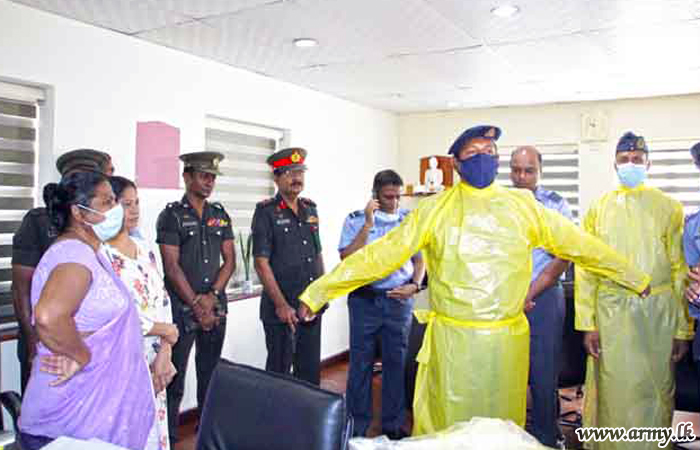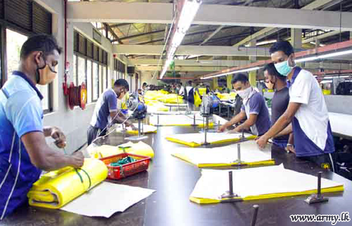 Major General Manjula Manatunga, Commandant, 'Ranaviru Apparels' on behalf of the Chief of Defence Staff and Commander of the Army Lieutenant General Shavendra Silva was there to hand over the first stock of those suits. These suits have been produced at low cost using micron 137 (polythene) by sealer machines under a new technology. The Darley Company (Pvt) Ltd sponsored the supply of those sealer machines to the factory where hundreds of physically-handicapped War Heroes wounded in action are productively employed. This production process would continue on the instructions and directions of the Commander of the Army under the supervision of the Commandant, 'Ranaviru Apparels'.