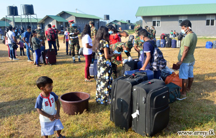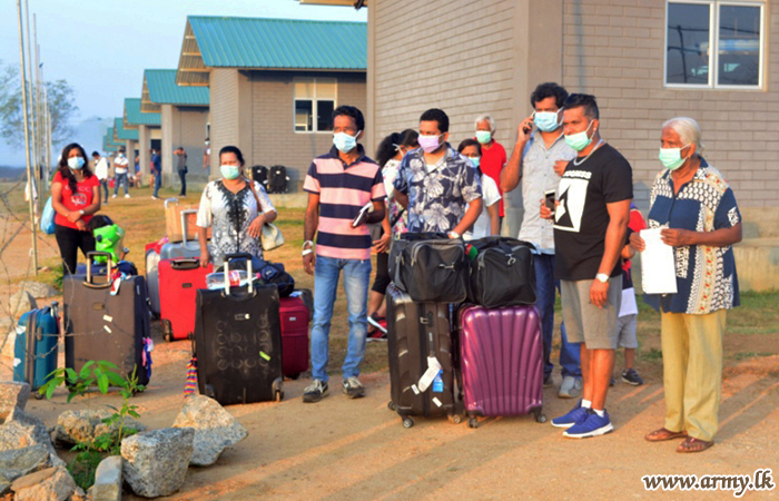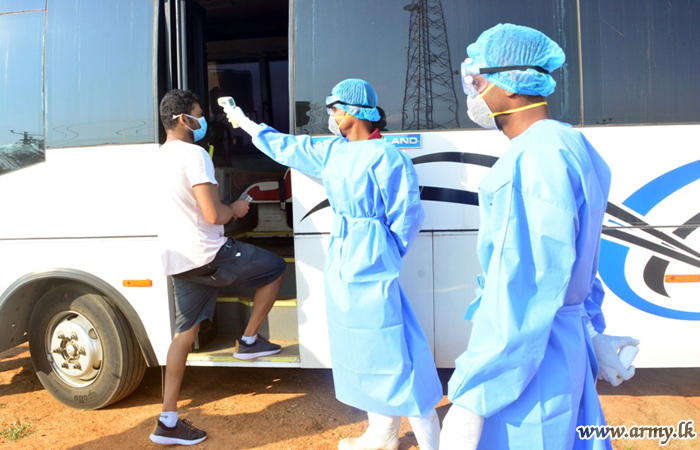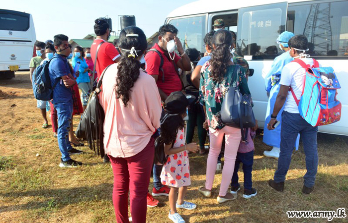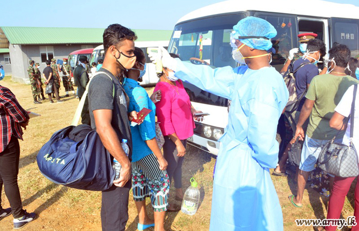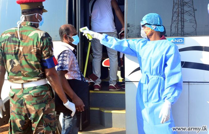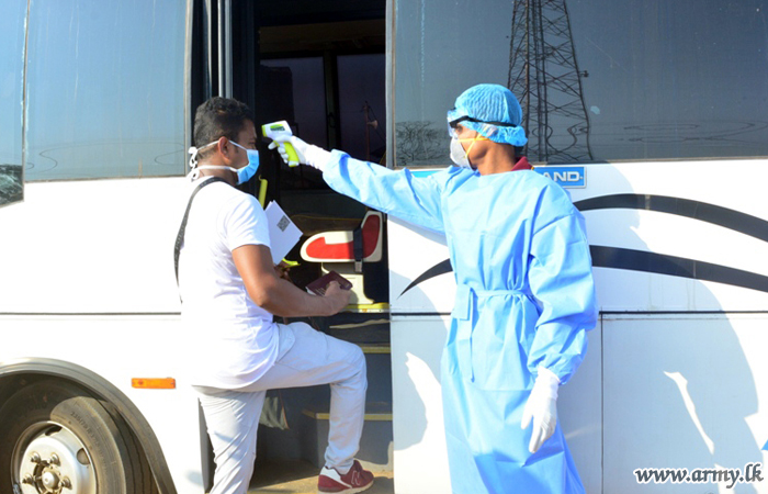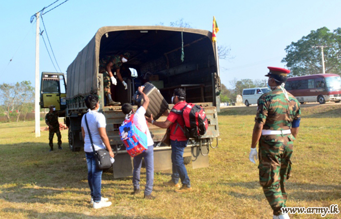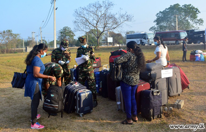 Army buses and luggage carrying Army trucks this morning (25) facilitated the transport of the second batch of 144 returnees who underwent the two-week long quarantine process at Kandakadu Quarantine Centers left for homes after completion of medical procedures and receipt of Quarantine Certificates.
