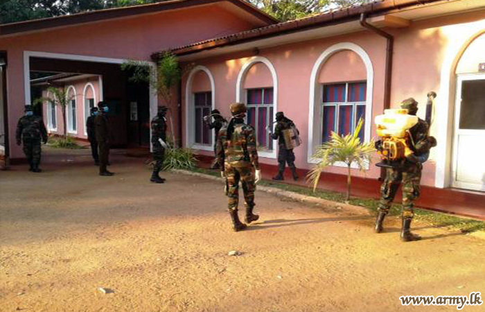 Meanwhile, troops of the 17 Sir Lanka National Guard (SLNG) carried out a similar disinfection programme with the assistance of the health officials at the Padaviya Base Hospital on Tuesday (24) in order to control the further transmission of the virus within the area.