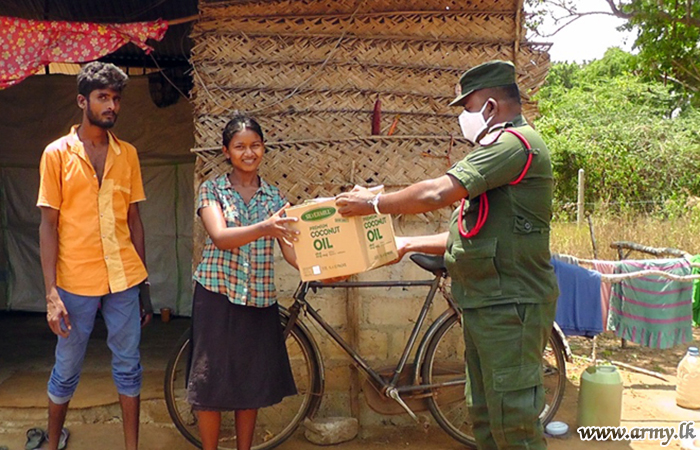 Under the direction of the Commander, Security Forces - Kilinochchi, Major General Jayantha Gunaratne and the close supervision of the 65 Division and the Commanders of the 651, 652 and 653 Brigades, troops distributed 47 dry ration packs among worst-affected needy families in 65 Division area on Sunday (22).