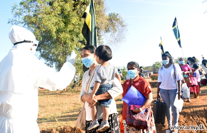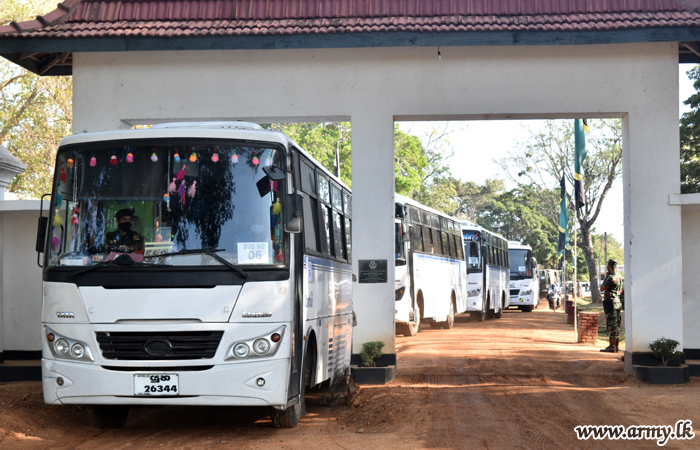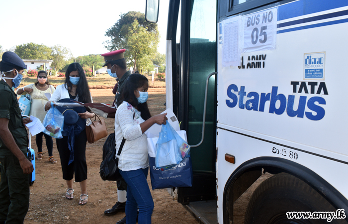 The groups, segregated according to their residential towns were provided with Army transport facilities for their destinations in Galle, Colombo, Kandy, Puttalam, Chilaw and Mannar areas. In addition, troops supplied them with snacks, water and lunch packets on their way with special focus on food varieties for infants and kids.