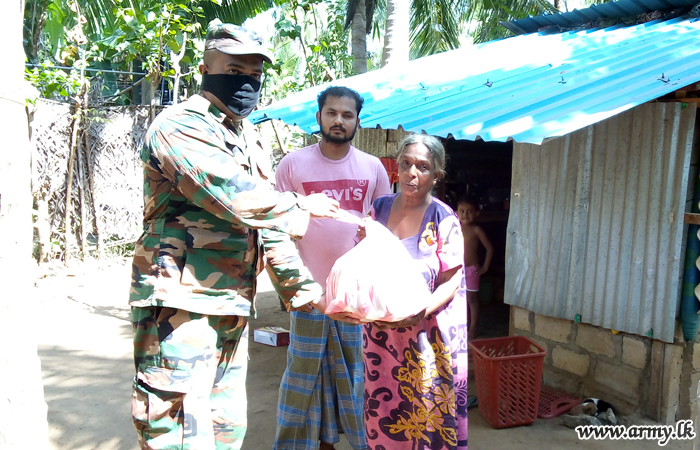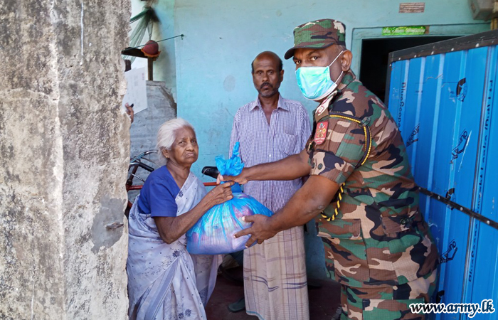 On Thursday (28) they distributed approximately 4,500 ration packs, provided by state agencies among the needy in the peninsula using Army vehicles and other resources. Troops according to details provided by state officials went to their houses with those dry ration packets, inclusive of rice, dhal, tinned fish, spices, vegetables, milk powder, etc.