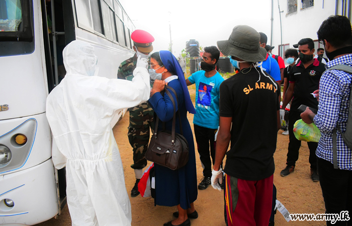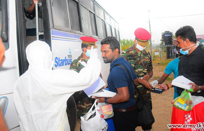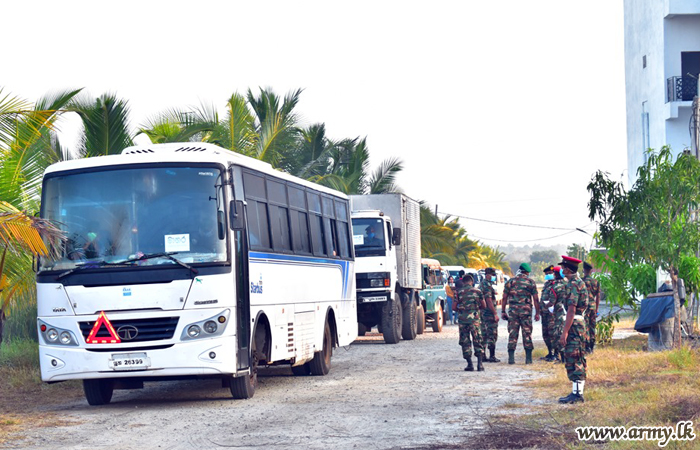 The groups, segregated according to their residential towns were provided with Army transport facilities for their destinations in Galle, Colombo, Kandy and Kurunegala areas. In addition, troops supplied them with snacks, water and lunch packets on their way with special focus on food varieties for infants and kids.