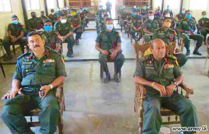 An awareness lecture on ‘Armed Forces' Prevention from COVID-19 Pandemic’ was delivered recently to Officers and Other Ranks of the 65 Division at the auditorium in the Battalion Training School in Mulankavil on the directions of the Commander, Security Forces-Kilinochchi, Major General Jayantha Gunaratne.
