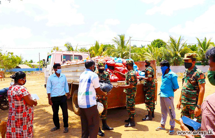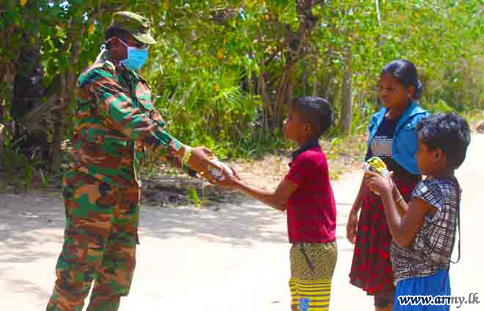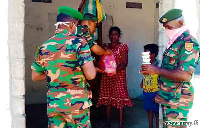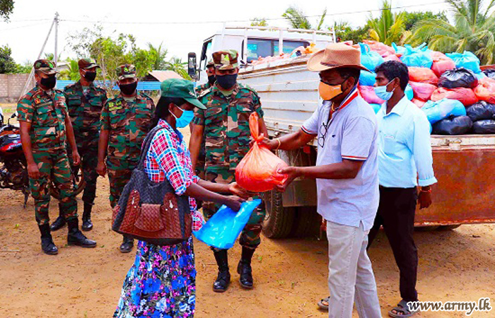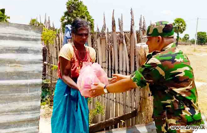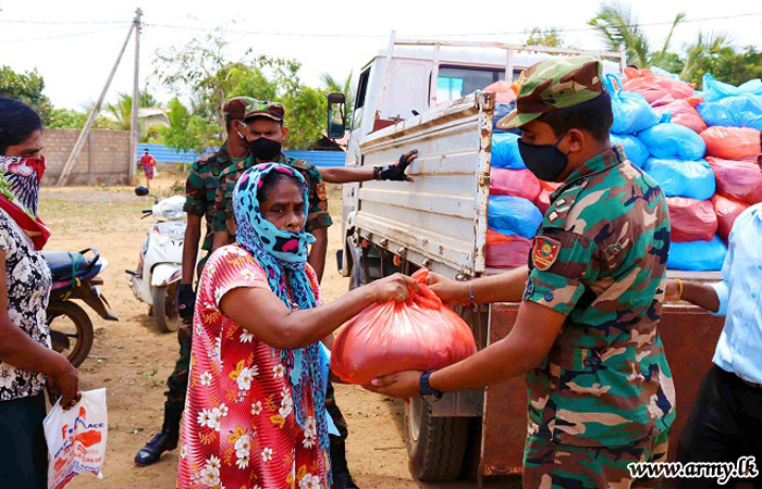Troops of 24 Vijayabahu Infantry Regiment, 11 (V) Gajaba Regiment, 5 (V) Mechanized Infantry Regiment and 2 Sri Lanka National Guard serving under the 66 Division of the Security Force HQ-Kilinochchi a few days ago distributed hot meal packs among 180 needy civilians and dry ration packs among 26 low income group families in Shivanagar, Pallikuda, Paranthan, Kollakarachchi and Weddiyakurichchi villages as relief measures following hardships they faced due to imposition of curfew to arrest the spread of COVID -19 epidemic.