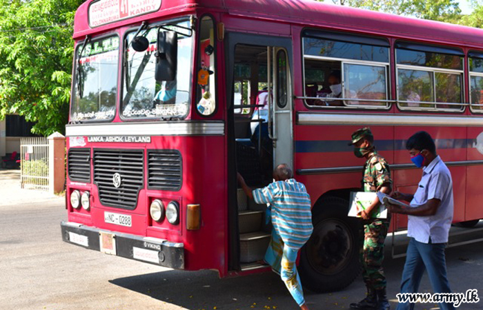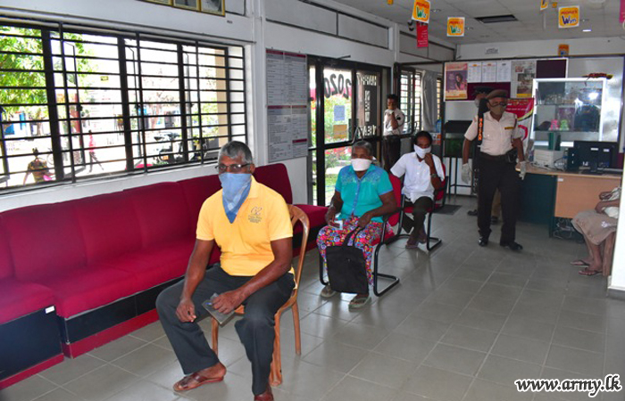 Army troops of all formations under island-wide Security Force HQs on Thursday (2) assisted the senior citizens of the country to collect their pension payments by taking them to banks on board Army buses.
