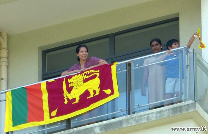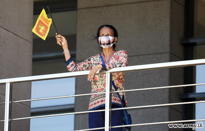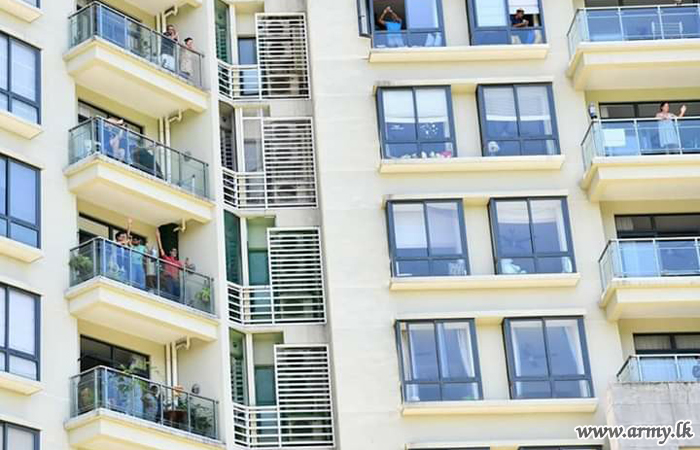 Vocalists, Bhathiya, Santhush and Umariya Sinhawansa also joined the Army band and rent the air with their popular hits. Lieutenant General Shavendra Silva arrived unannounced at the location and encouraged the arrangement. Civilians from their balconies were seen waving hands with national flags and clapping the artists who were there to entertain them at this critical hour of our society and will be continued in other highly populated places in time to come. |