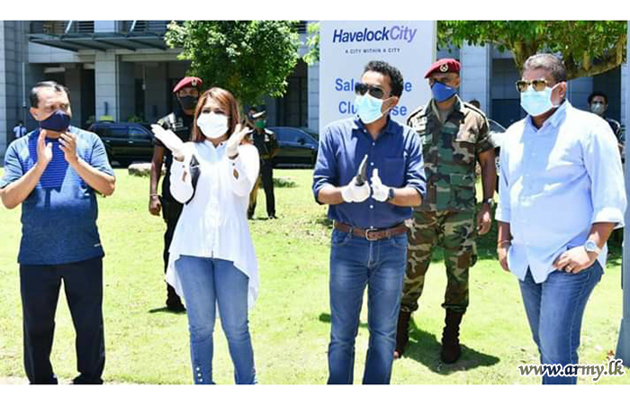 With the objective of challenging boredom and providing mental relaxation to the public who are home-confined due to prevailing COVID-19 epidemic threat and curfew hours, the Army Beat Group on the guidelines given by Lieutenant General Shavendra Silva, Head of the National Operation Centre for Prevention of COVID -19 Outbreak, Chief of Defence Staff and Commander of the Army staged a mobile musical entertainment this morning (5) around Havelock city apartments in Havelock town, Colombo 5.