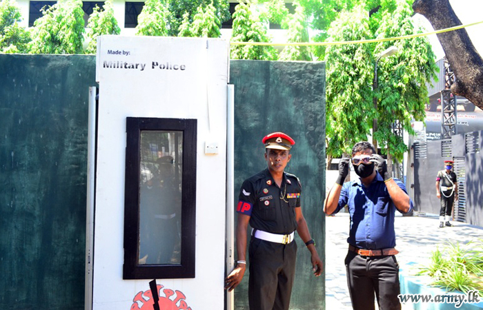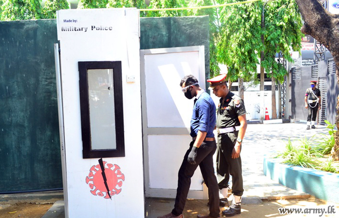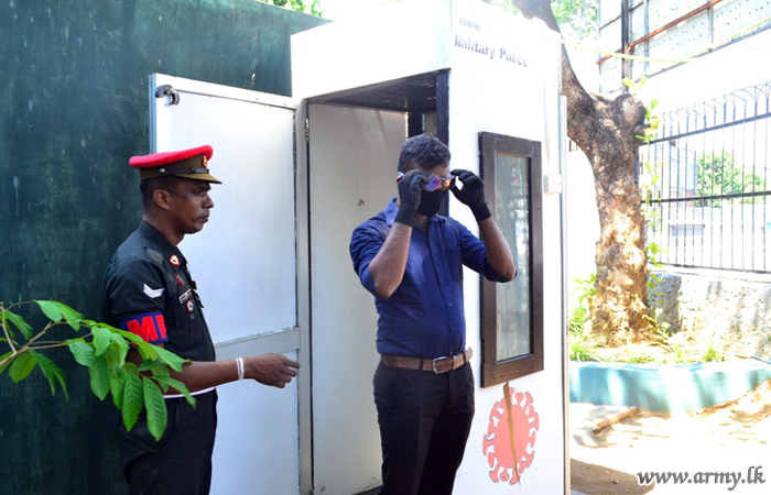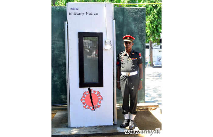 An innovative creation, produced by an Army Sergeant of Sri Lanka Corps of Military Police Regimental Headquarters (RHQ SLCMP) commenced the disinfection of all those arriving at the SLCMP Headquarters as a precautionary measure against the spread of the COVID-19 outbreak.